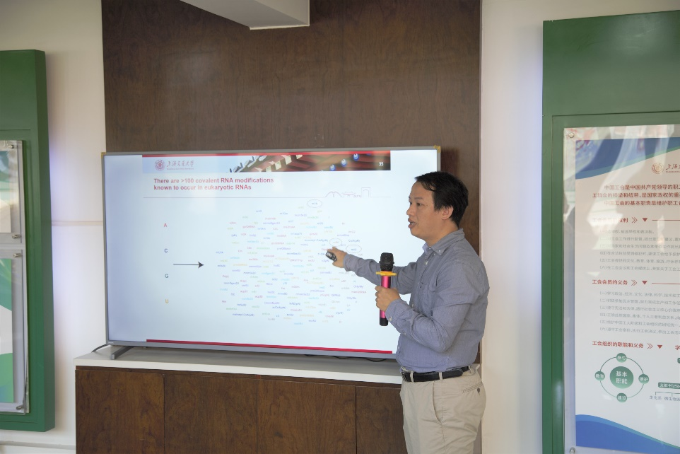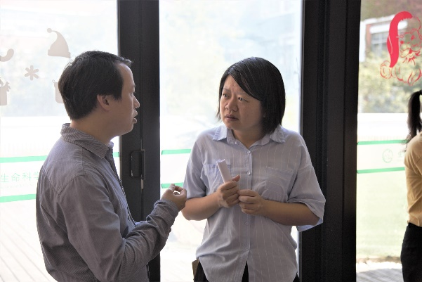 主题报告结束后,参会人员就自己感兴趣的研究问题与参会者进行了深入具体的探讨。在自由交流环节,与会人员就“哪些技术手段可以知道一个蛋白膜与周围的哪些磷脂相互作用”、“RNA中哪种化学修饰最多”等问题和两位主讲老师进行热烈讨论。