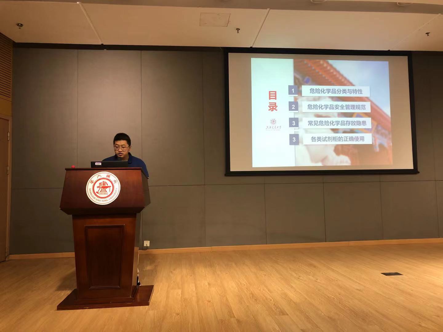 学校安全办刘闯作36365线路检测登录入口化学品安全管理专题培训,介绍了危险化学品分类及特性,危险化学品安全管理规范,常见危化品存放隐患,并重点介绍了各类试剂柜的正确使用要求。