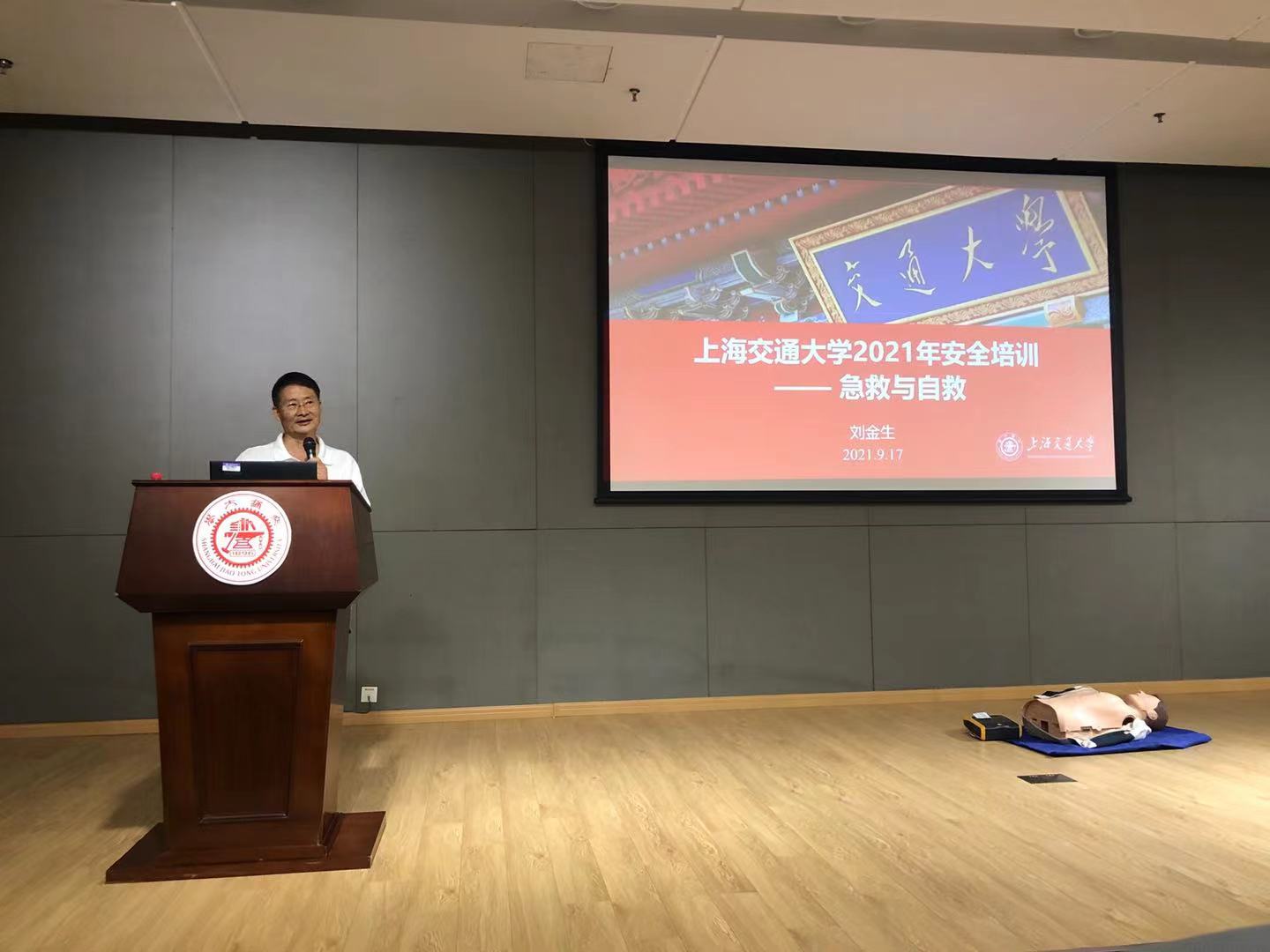 校医院院长刘金生作急救与自救专题培训,介绍了新冠肺炎防控知识及接种疫苗的作用,向同学们详细介绍了救护新概念,并展示了心肺复苏术,指导新生们借助模型,现场进行了模拟实践,收获了新生们良好的互动。