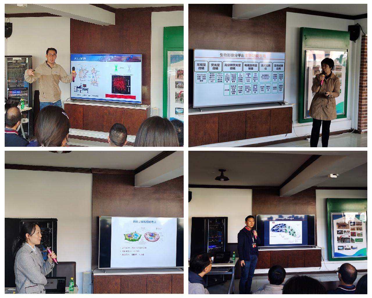 会议以用户经验交流展示的方式进行,相关课题组师生积极交流了显微成像设备在植物、动物和微生物方向的应用经验,并对仪器共享平台和管理系统网络提出了技术需求和管理建议反馈。最后,尼康和奥林巴斯的技术人员分别就“如何更好地利用现有平台成像设备”、“怎样进行深度技术开发”进行介绍。