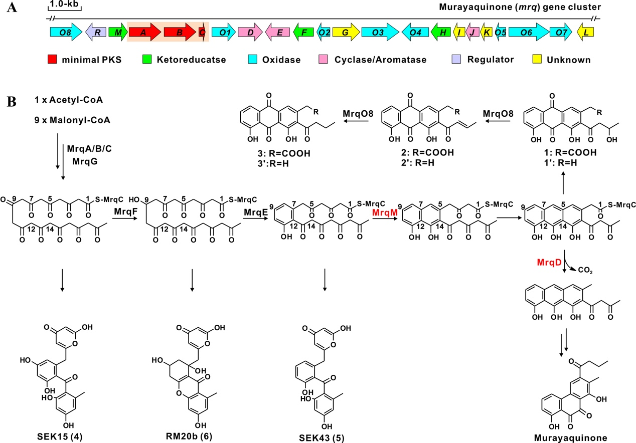 图1.村山醌的生物合成基因簇及其推测的合成途径
