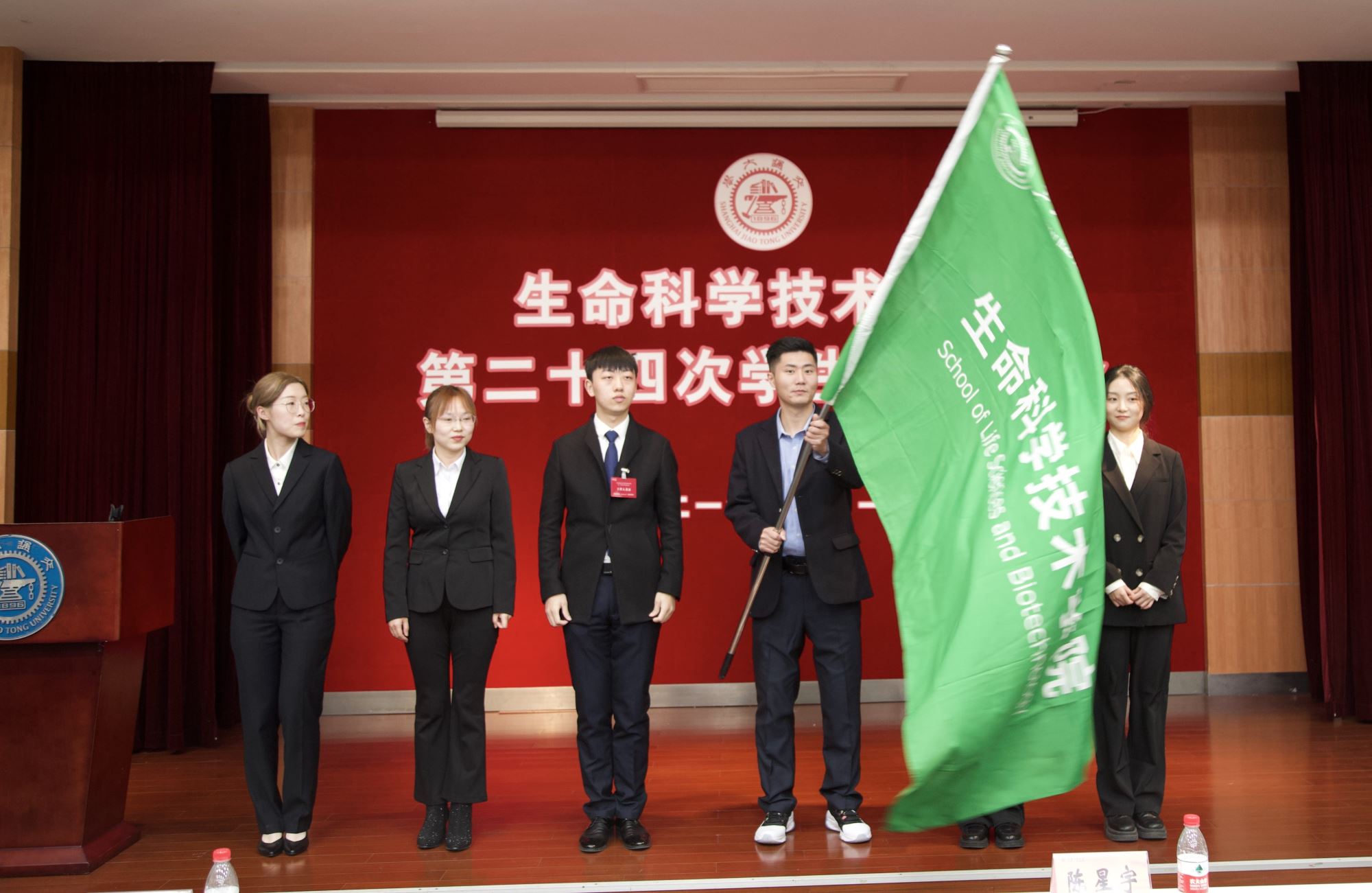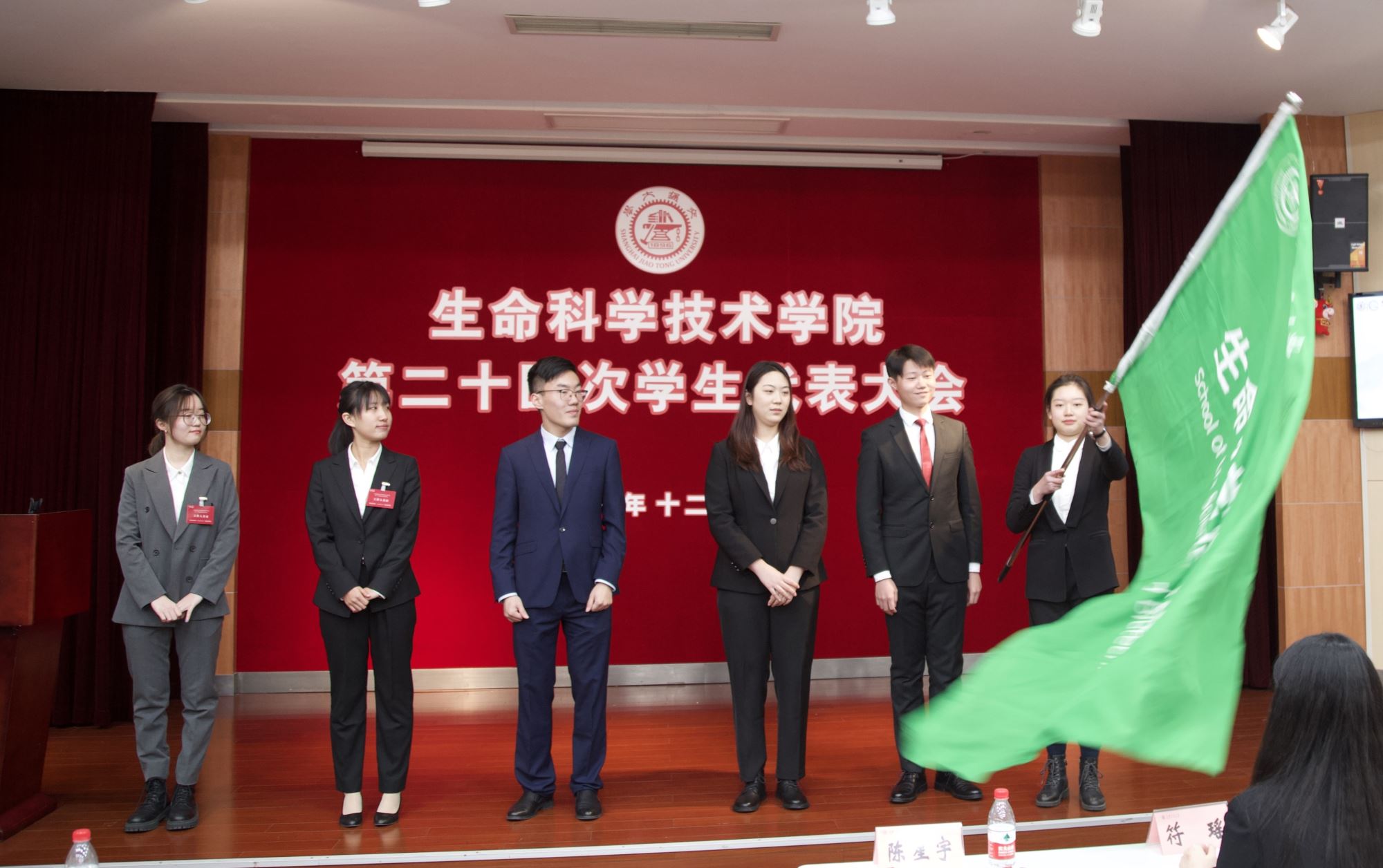 新老主席团院旗交接仪式中,新任主席团成员接过代表责任与使命的院旗,象征着36365线路检测登录入口学生工作的传承与发展。