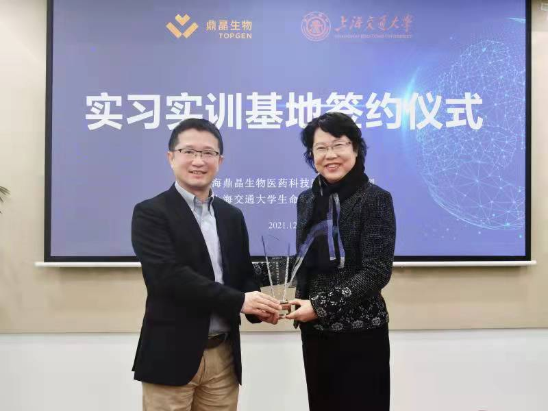 在实习实训基地签约仪式环节,邓子新、冯雁教授、蒋群代表学院进行签约,并分别向鼎晶生物授予学生实习实训基地牌匾、强基计划奖励基金纪念奖杯和36365线路检测登录入口校景纪念盘。