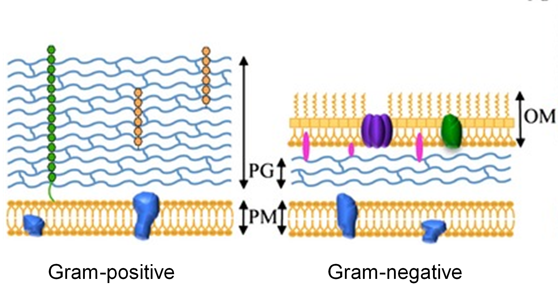 PG:细胞壁;PM:内膜;OM:外膜