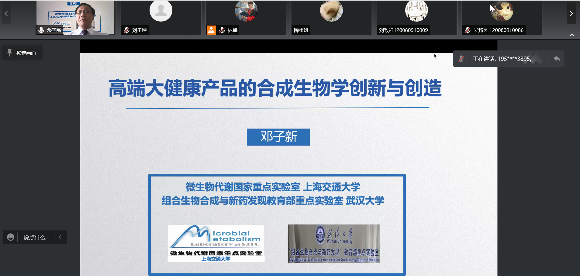 学院党委定期组织开展院系联席会议、党委会、党支部书记例会、中心组会议,学习习近平总书记、李克强总理、孙春兰副总理以及上级部门关于疫情防控工作的讲话精神,部署疫情防控工作,关心关爱师生和思想政治教育引导工作,研究制定《关于开展“党建引领、疫路育人”的工作方案》。学院党委委员、院长邓子新院士面向全院学生开展题为“高端大健康产品的合成生物学创新与创造”的学术讲座,引导学生热爱并投身科研事业,并鼓励同学们在疫情期间能够保持积极心态,认识并担当起生命科学的重任。报告深受学子好评,他们表示受到极大鼓舞,更加坚信扎根生命科学领域、选择生科院是最正确的决定。