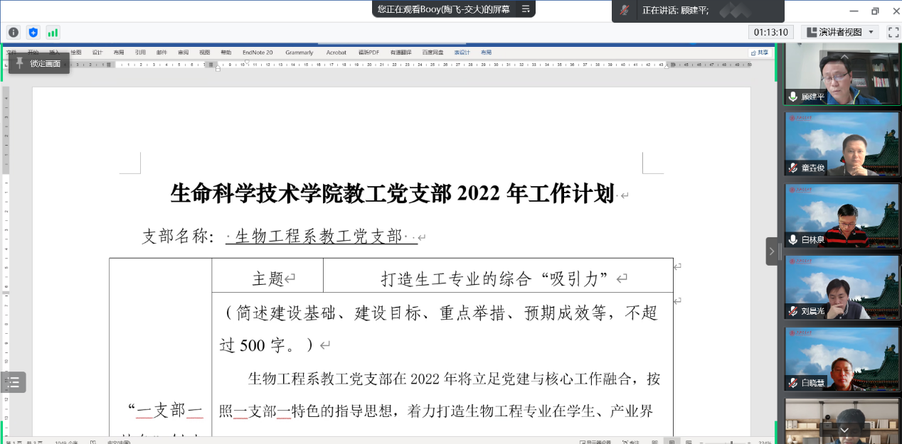本次师生主题党日活动,大家积极响应,讨论热烈,分享交流疫情防控期间的工作生活,同时对师生存在的困难或者需求积极向学院反馈,叫响做实“有困难找支部、有问题找党员”的传统,最后通过合唱《春天的故事》,展现生科师生生机勃勃的精神面貌。