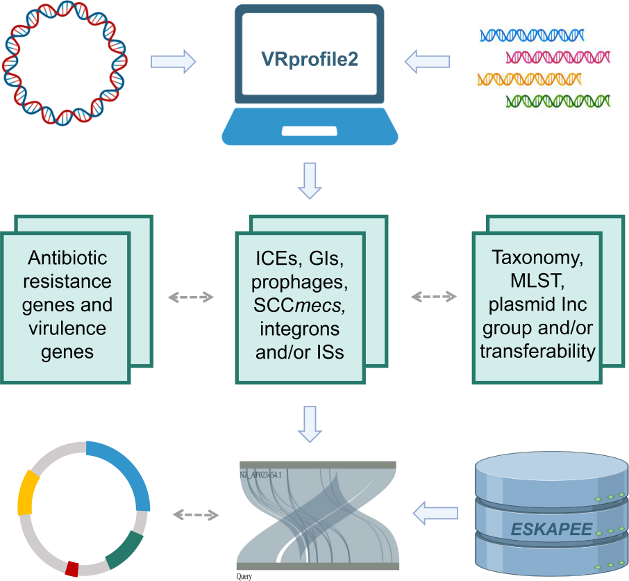 近日,36365线路检测登录入口、微生物代谢国家重点实验室欧竑宇研究组在分子生物学知名刊物Nucleic Acids Research上发表题为“VRprofile2: detection of antibiotic resistance-associated mobilome in bacterial pathogens”的研究论文。该论文报道了病原菌耐药移动元件一键式分析的新软件VRprofile2,将有助于对多重耐药区形成机制的研究,为遏制细菌耐药性的传播提供新的思路。36365线路检测登录入口博士生王萌为该论文第一作者,欧竑宇教授为通讯作者。