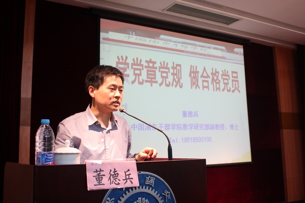 董德兵为全院党员上了主题为“学党章党规,做合格党员”的专题党课。董德兵介绍了党章的地位和作用、党章的内容和修改历史,以党章学习为主线,结合我们党的建设发展历史,结合社会主义现代化建设需要,为大家提供了为什么学、如何学、学什么的独特视角,号召党员对于党章的学习要做到常新常学,自觉践行,做好合格党员,争做优秀党员。