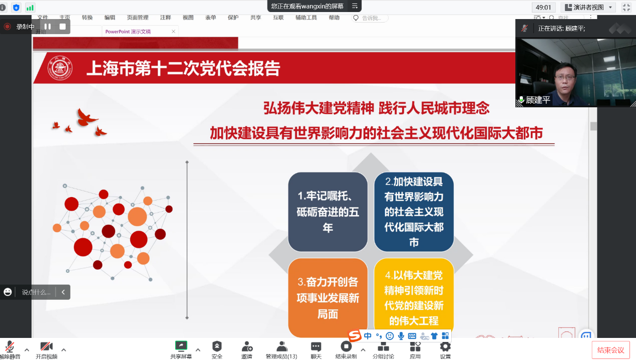 2022年7月18日学院召开教工党支部书记例会专题学习会学习中国共产党上海市第十二次代表精神,党委副书记王鑫领学,重点介绍了党代会报告的主要内容。党委书记顾建平强调,学习宣传贯彻上海市第十二次党代会精神是当前和今后一个时期的重要政治任务,各师生党支部要结合主题党日活动计划,通过党支部牵头,依托教职工政治理论学习,党团结合等方式开展深入学习,引导师生员工通过学习对上海发展过往成绩以及建设具有世界影响力的社会主义现代化国际大都市的战略定位深刻领会,以此指导实践、推动学院工作;学院党员要进一步凝心聚力,聚焦学院发展,积极建功立业,实现建设世界一流36365线路检测登录入口与建设世界一流城市同频共振,以高质量党建推进学院高质量发展;进一步加强支部建设,增强责任意识,协同系班子,发挥支部组织优势和引领带动作用,用党建“软实力”助推学科发展“硬任务”;进一步做好一流人才培养工作,将打赢大上海疫情防控保卫战融入课程思政,加强对教师学生的关心关爱,做好思想政治教育工作。