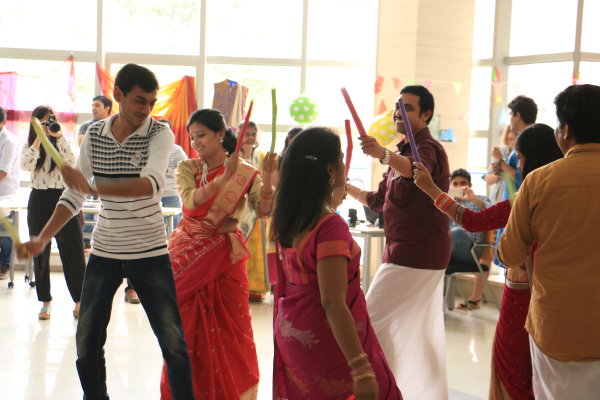 在欢乐的歌舞之后,热情的印度留学生们还邀请了现场的外国友人们加入到他们的游戏环节中,在互动中享受乐趣、增进情谊。