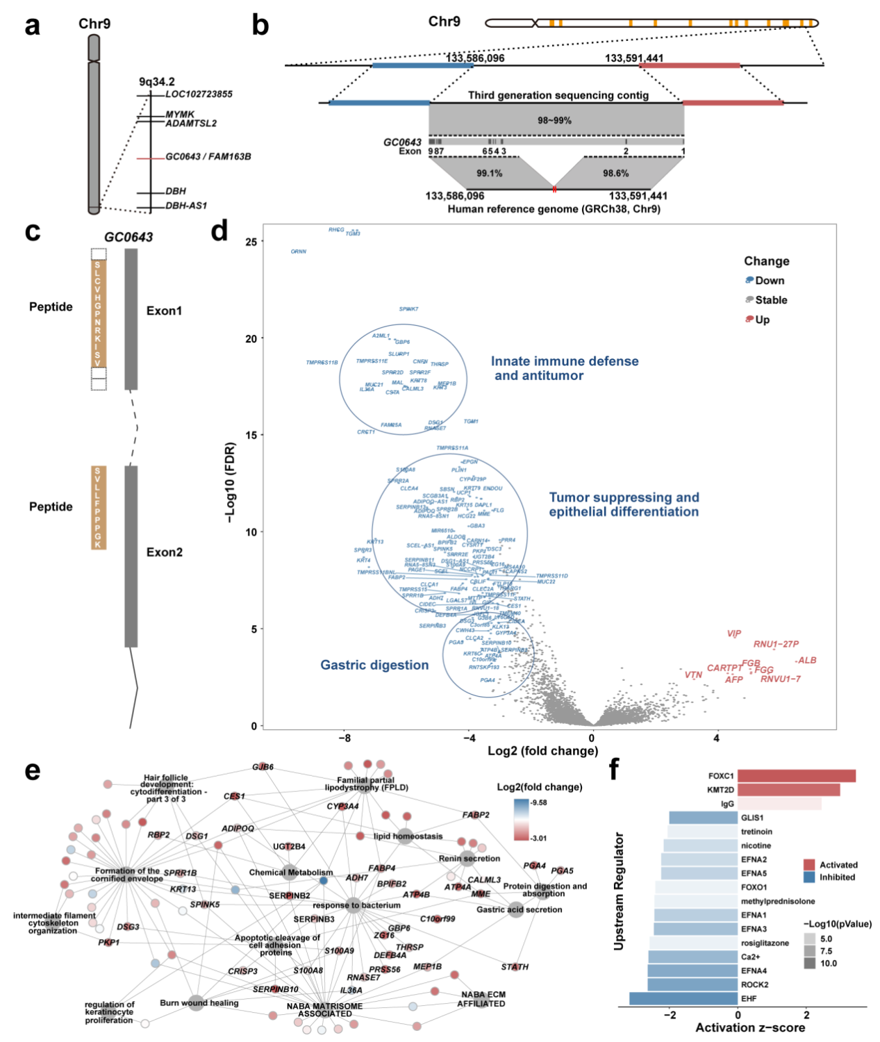 对于非参考基因组的新序列,课题组通过基因结构预测、利用长读长测序数据进行染色体定位等,成功发现了可以定位到染色体9q34.2位点的GC0643基因。