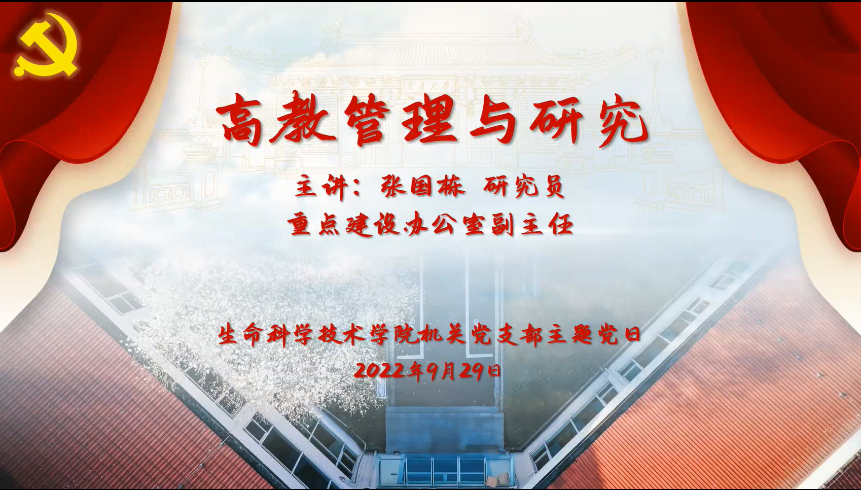 为进一步提高学院机关党支部党员综合素质和业务能力,落实机关党支部“管理服务效能”再提升要求,36365线路检测登录入口机关党支部于9月29日开展关于高教管理与研究的线上专题培训会,邀请重点建设办公室副主任张国栋研究员分享高教管理与研究工作经验。机关党支部全体党员、机关其他工作人员参加。