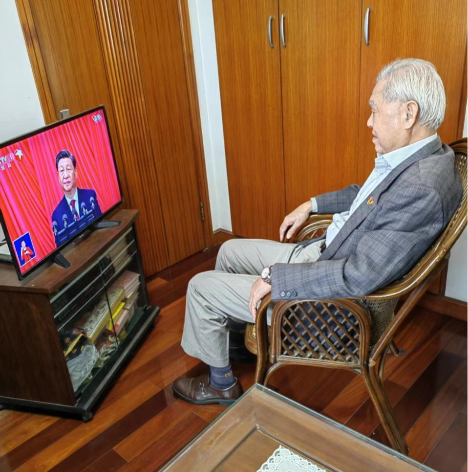 盼望已久的二十大今天终于开幕了,刚刚我收看了习近平总书记代表十九届中央委员会向大会作的报告,备受鼓舞。习总书记的报告为我国进一步发展描绘了新的蓝图,谱写了新的篇章。我虽然已到耄耋之年,但经过党的几十年教育和培养,我深感要不忘初心,牢记使命,我将为2035年我国基本实现社会主义现代化、到本世纪中叶全面实现社会主义现代化的宏伟目标努力贡献自己的一份力。