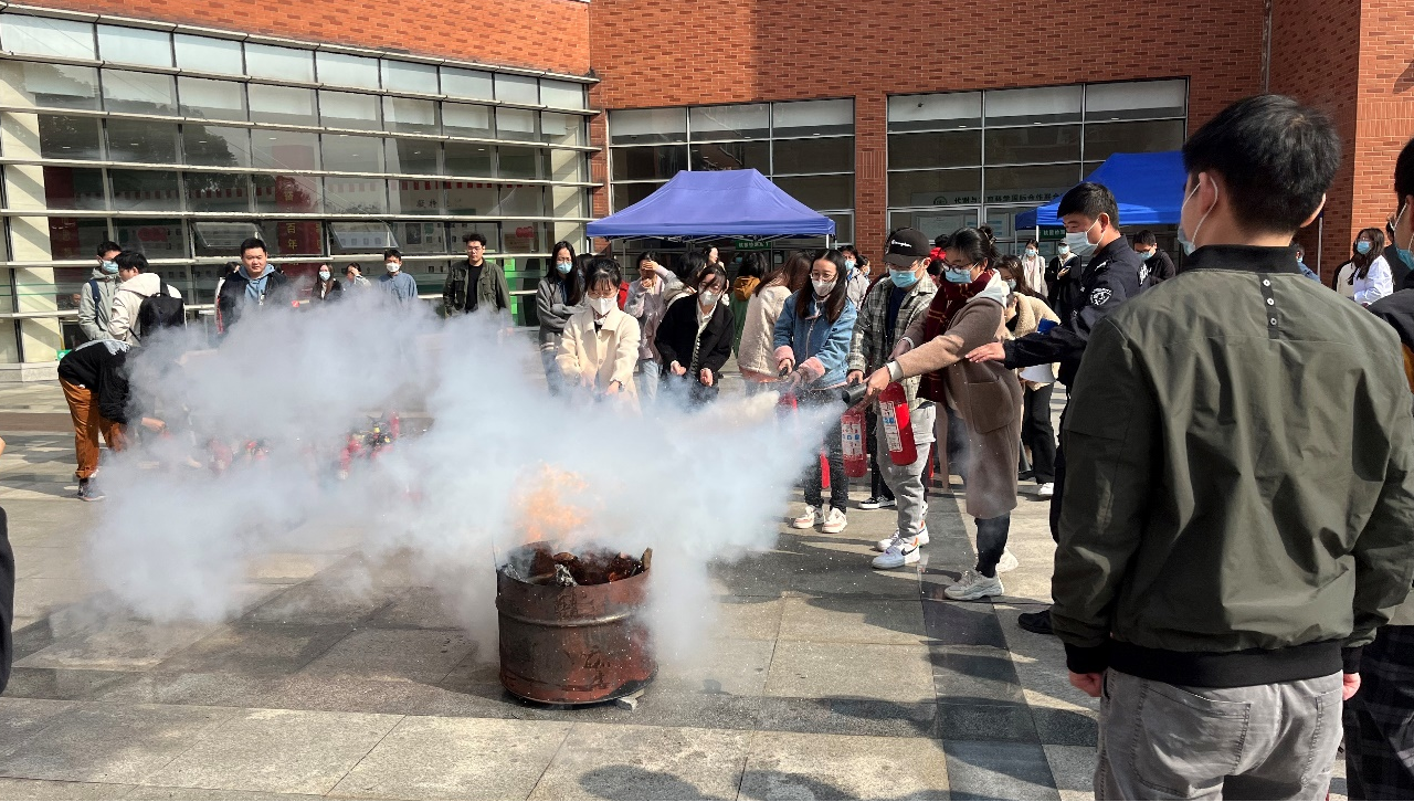 随后,学校保卫处消防科谢鹏辉介绍了火灾的案例警示及灭火的基本常识等。2022级新生在学院广场前进行了应急救援和消防演练。