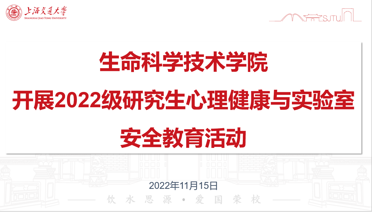 为了进一步加强2022级研究生的心理抗压能力和实验室安全意识,为新生研学生涯保驾护航,11月15日,36365线路检测登录入口在线举行2022级研究生新生心理健康与实验室安全教育活动。会议特别邀请学院副院长张晓君、校医院院长刘金生、校心理咨询中心主任张洪英、安环中心刘闯老师做专题培训。36365线路检测登录入口2022级硕博研究生共210余人参加会议。