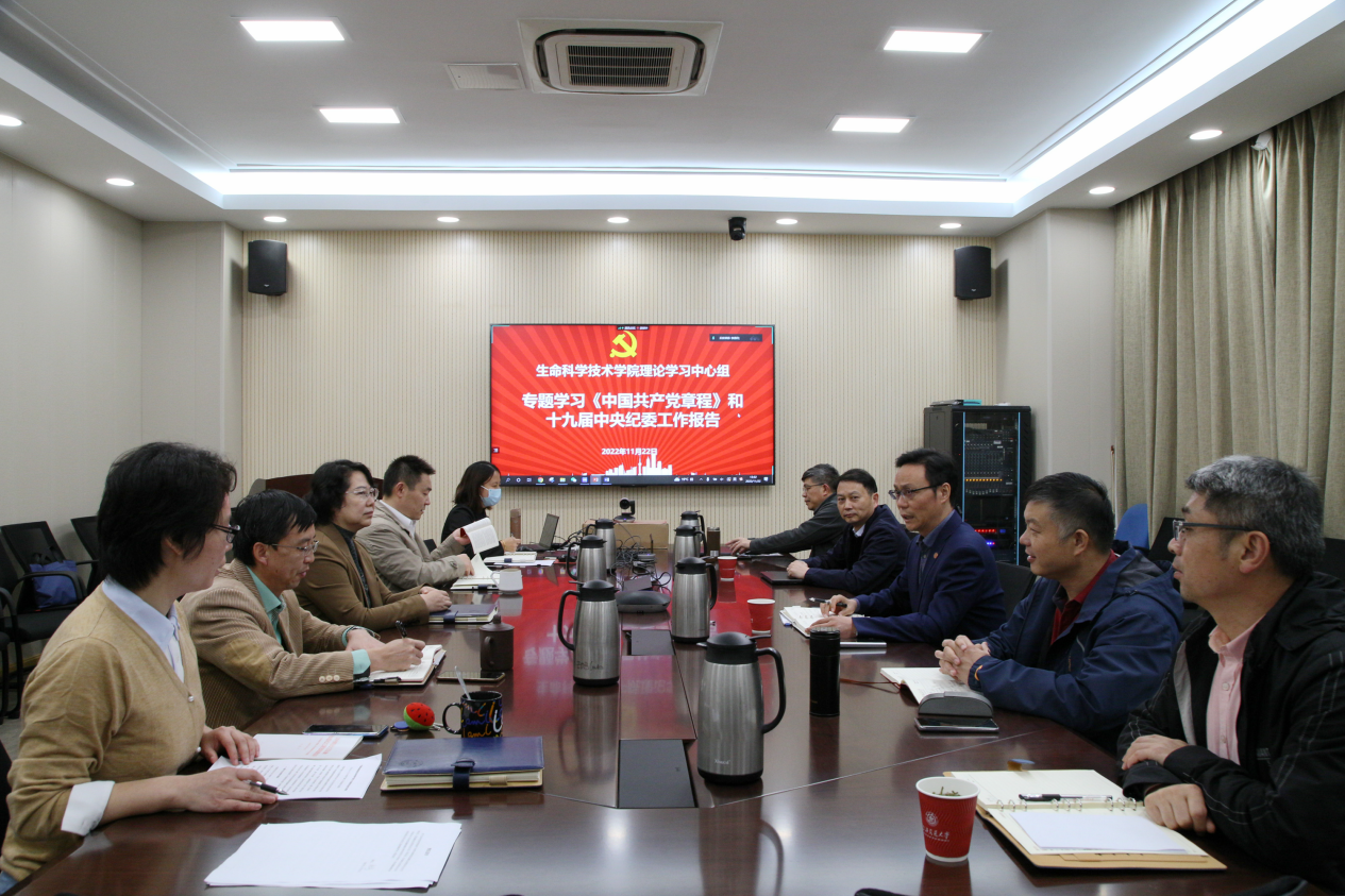 会前,全体成员自学《中国共产党章程(2022年新旧对照版)》,结合新旧党章,针对修订内容进行一一对照学习。会上,集体收看了《焦点访谈》党的二十大报告解读系列节目“奋斗新的伟业——新征程上党旗飘扬”,权威解读了本次党章修订的背景、主要内容及意义。随后,党委副书记王鑫领学《十九届中央纪律检查委员会向中国共产党第二十次全国代表大会的工作报告》。党委委员林双君、张雪洪围绕党章学习、纪委工作报告和全面从严治党作主题发言交流。