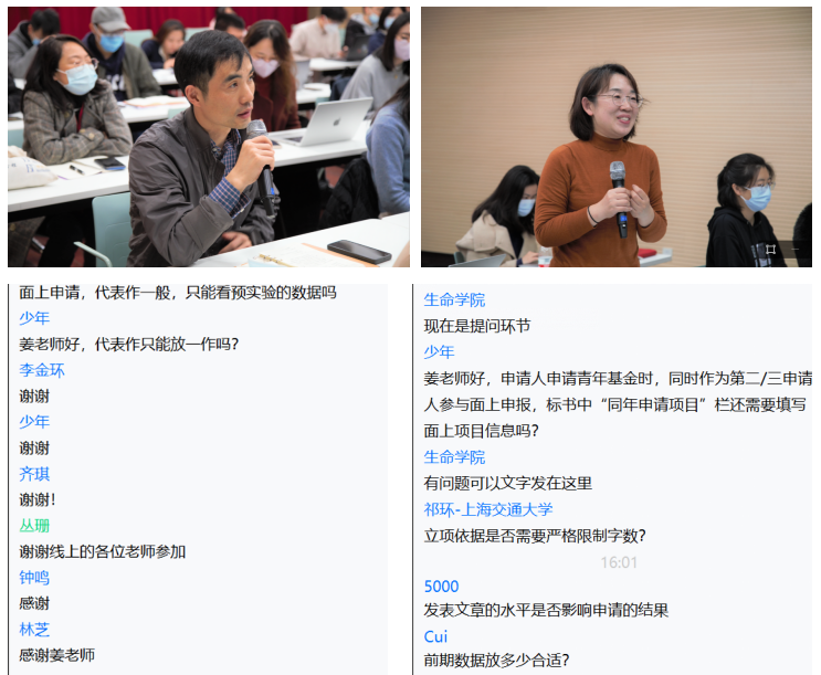 讨论环节,与会者就同一学部多年申请后但面临内卷严重,是否要换学部以及什么时候换较合适,立项依据是否需要严格限制字数,项目申请相关的预实验数据写的程度如何把握等问题和两位嘉宾进行了深入讨论。与会者表示,通过本次自然科学基金申报指导讲座,明确了项目书的写作方向,掌握了一定的技巧,对基金委的政策和改革举措也有了深入了解,在接下来撰写基金申请书时更加有的放矢,有据可循。