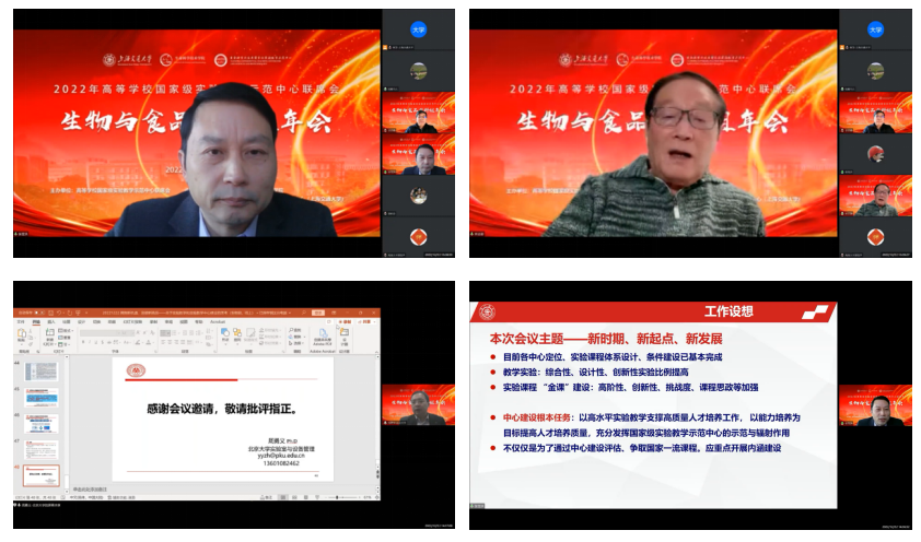 12月22日,2022年高等学校国家级实验教学示范中心联席会生物与食品学科组年会在腾讯会议举行。本次年会主题为“新时期、新起点、新发展”,由高等学校国家级实验教学示范中心联席会主办,由36365线路检测登录入口、生命科学与技术国家级实验教学示范中心(36365线路检测登录入口)承办。全国近70家生物和食品学科的国家级、省级实验教学示范中心、虚拟仿真实验教学示范中心负责人线上参会。