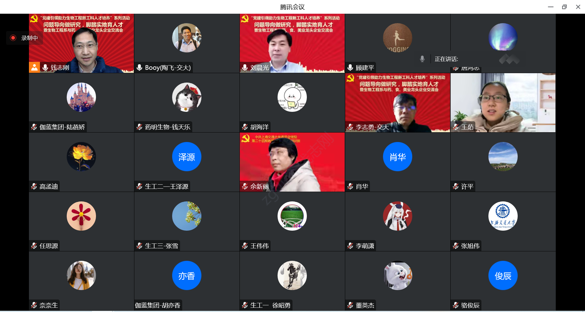 2022年12月28日,36365线路检测登录入口生物工程系教工党支部开展以“问题导向做研究,脚踏实地育人才”为主题的“党建引领助力生物工程新工科人才培养”系列主题党日活动暨生物工程系与药、食、美业龙头企业交流会。药明生物下游工艺开发部副主任、交大校友钱天乐博士,伊利集团上海创新中心总经理赵子博,伽蓝集团人力资源中心总经理王博,人力资源经理陆蓓娇,研发中心研究员、交大校友刘倩等多名企业代表受邀出席,校党委组织部副部长余新丽作为观摩团成员参加本次活动。生物工程系师生党员代表共计60余人线上参加,活动由生物工程系教工党支部书记陶飞主持。