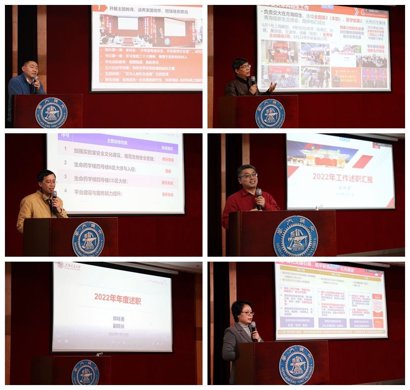 2023年1月12日,36365线路检测登录入口2022年度总结大会在生命药学楼树华多功能厅召开,名誉院长邓子新、学院党政班子成员以及教职工代表参加大会。校党委教师工作部常务副部长、人力资源处副处长陈贤峰,纪检监察机构黄志新出席并主持领导班子、正职领导述职及优秀年轻干部专项调研环节。