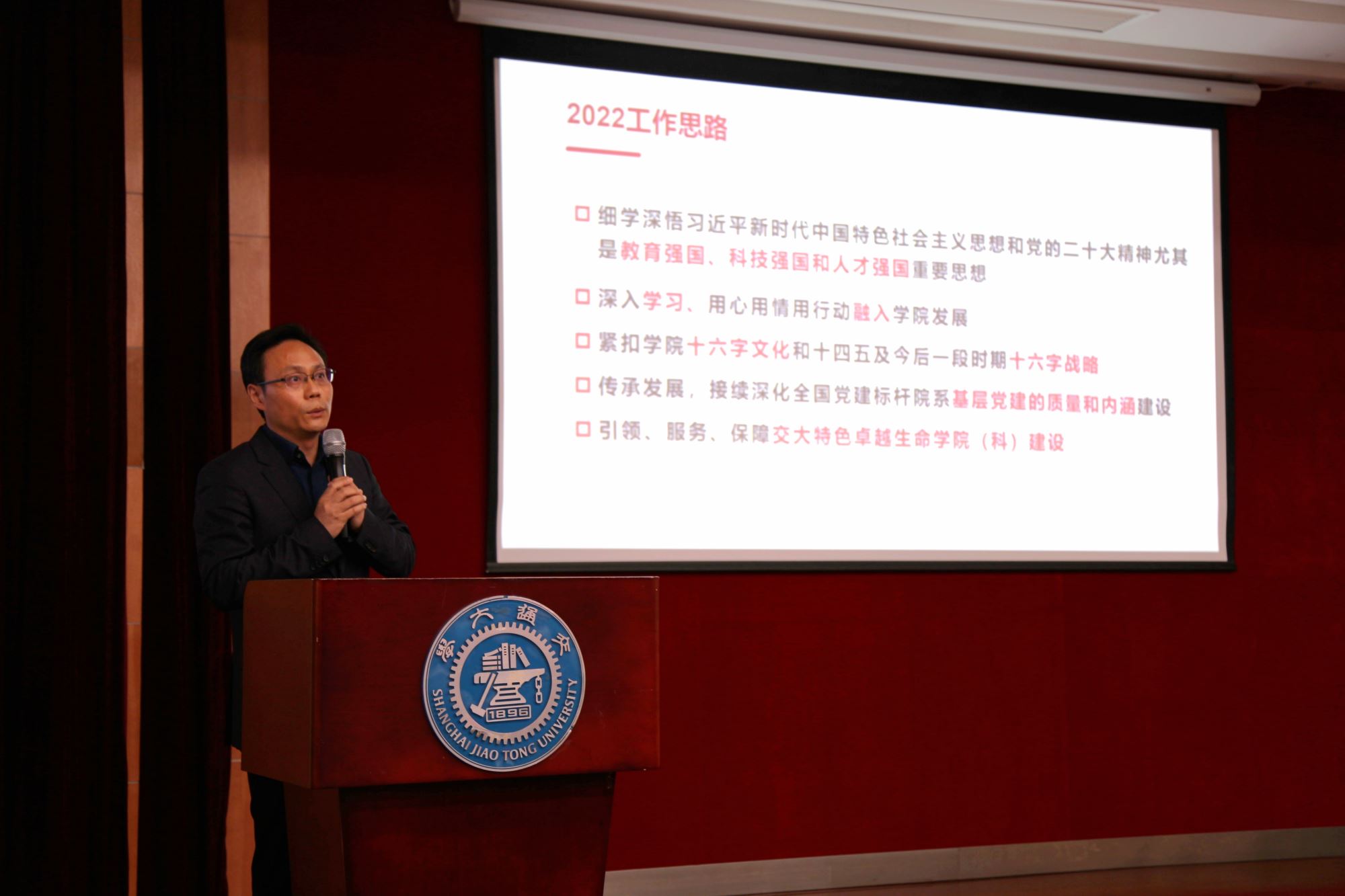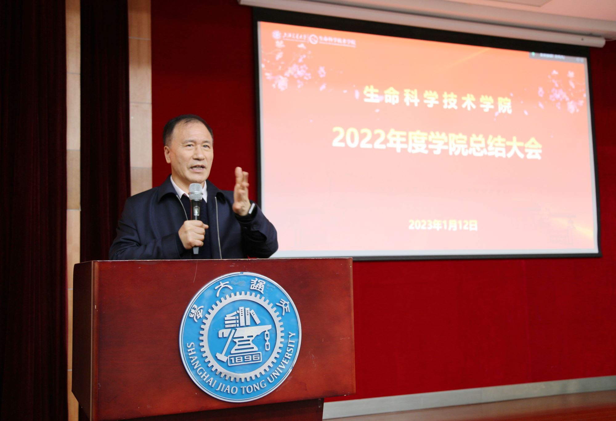 邓子新总结讲话。他感谢全体教职工对学院发展做出的成绩。他表示,2022年是不寻常的一年,大家齐心协力,共克疫情难关,在人才培养、科学研究、队伍建设和学科基地建设等方面硕果累累。他指出,作为生命科学领域的科研工作者,应始终坚持“四个面向”加大科技攻关力度,努力解决“卡脖子”难题。他强调,科研工作者要做好科研顶层设计,加强科研思维训练,担负起新时代的使命与责任,为把我国建设成世界科技强国做出贡献。