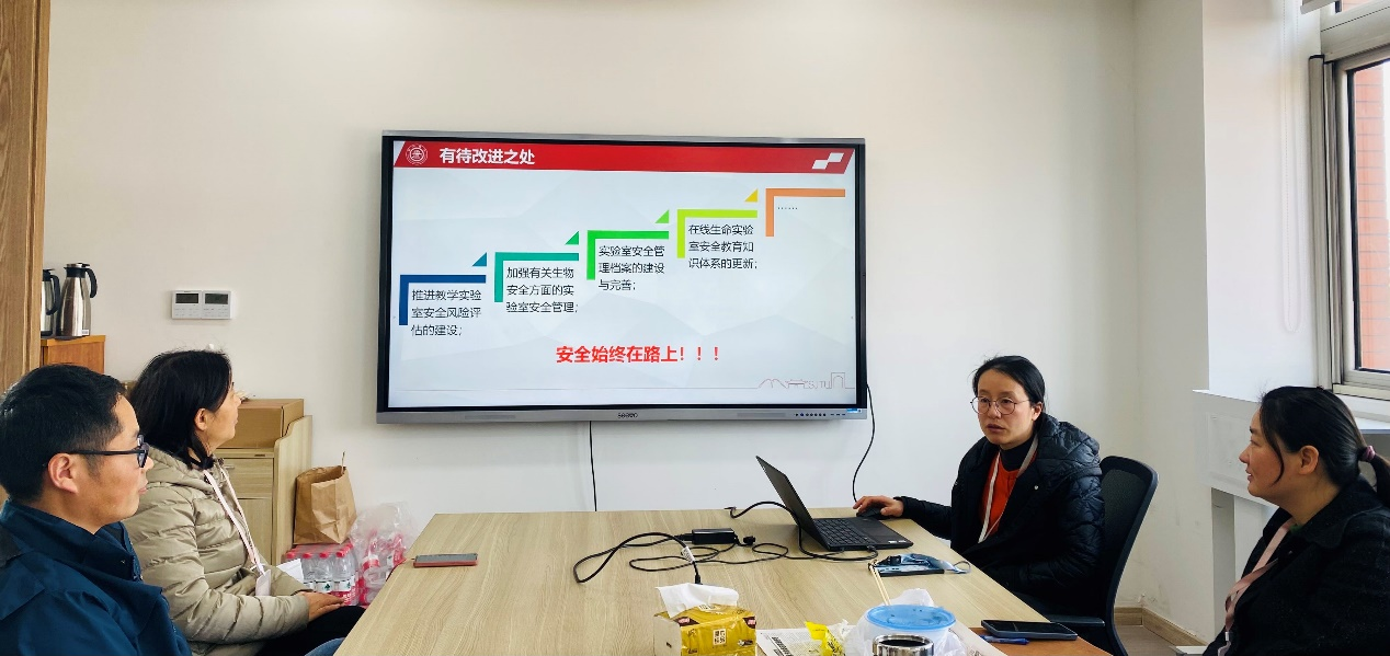 随后,秦敏君从管理制度设计、安全检查、实验室管理和安全教育等方面入手,向大家重点介绍了化学试剂的存放、冲淋设备的维护、特种设备的使用、实验室垃圾分类处理、学生实验安全意识等方面的管理规范和存在问题。