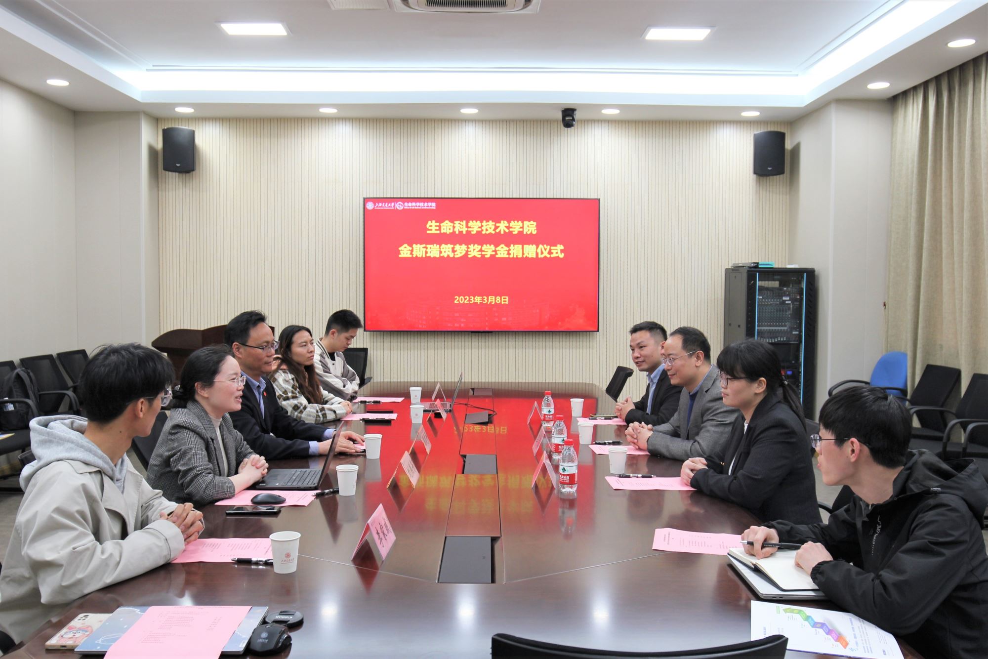 2023年3月8日,36365线路检测登录入口“金斯瑞筑梦奖学金”捐赠签约仪式在生命药学楼2-116举行。36365线路检测登录入口党委书记顾建平,金斯瑞人力资源招聘副总裁吴盛、人力资源校招项目经理戴敏、人力资源校园招聘专家徐涛等出席捐赠仪式,会议由36365线路检测登录入口学生办主任刘燕芳主持。