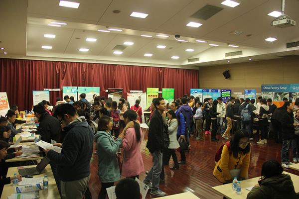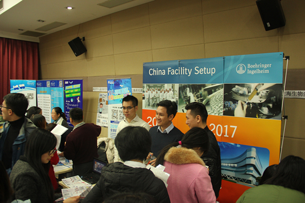 招聘会现场气氛火热,参展单位有知名国企和外企。同学们手持精心准备的自荐书和简历,满脸自信的穿梭在求职的人流中,有礼貌的同招聘人员进行交流,主动了解用人单位的招聘情况。几家倍受同学青睐的企业招聘展位上海生物制品研究所有限责任公司、勃林格殷格翰生物药业(中国)有限公司、上海药明康德新药开发有限公司以及深圳华大基因研究院等被围得水泄不通。部分企业还在学院的会议室举办了小型宣讲会和面试,介绍公司的情况,使同学们对公司有更多了解。
