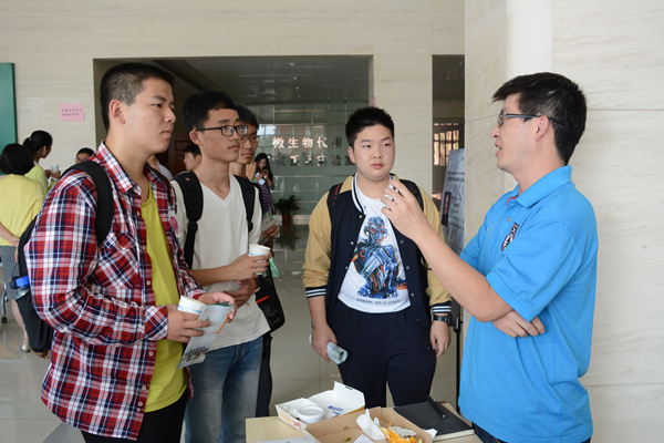 为了让新生对36365线路检测登录入口和生命学科有全面正确的认识,在学院学生办和教务办的共同组织下,36365线路检测登录入口开放日活动于10月21日隆重举行。本次开放日面向36365线路检测登录入口、生命与环境交叉平台和工科试验平台的2015级新生,通过午餐交流会、学院与专业介绍、实验室参观等形式多方位展现生命科学的魅力,共吸引了七十多名同学前来参加。36365线路检测登录入口党委副书记李文纯、教务办公室主任谭晶、各系教学副系主任及多位专业教师参加了活动。
