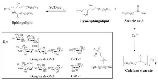 鞘糖脂是一类由神经酰胺和寡糖链以糖苷键连接形成的双亲性糖脂化合物,广泛参与细胞与外界的生化信号传导,在细胞增殖、分化、衰老、凋亡等各阶段均发挥重要作用。鞘糖脂类化合物对癌症、神经退行性疾病、自免疫疾病等重大疾病具有一定的治疗效果。溶血鞘糖脂是鞘糖脂的N去酰基化产物,可以作为药物中间体合成各种鞘糖脂衍生物,促进鞘糖脂类新药的开发。但由于溶血鞘糖脂合成受到化学合成路线复杂、产率低等制约,影响了该领域的快速发展。