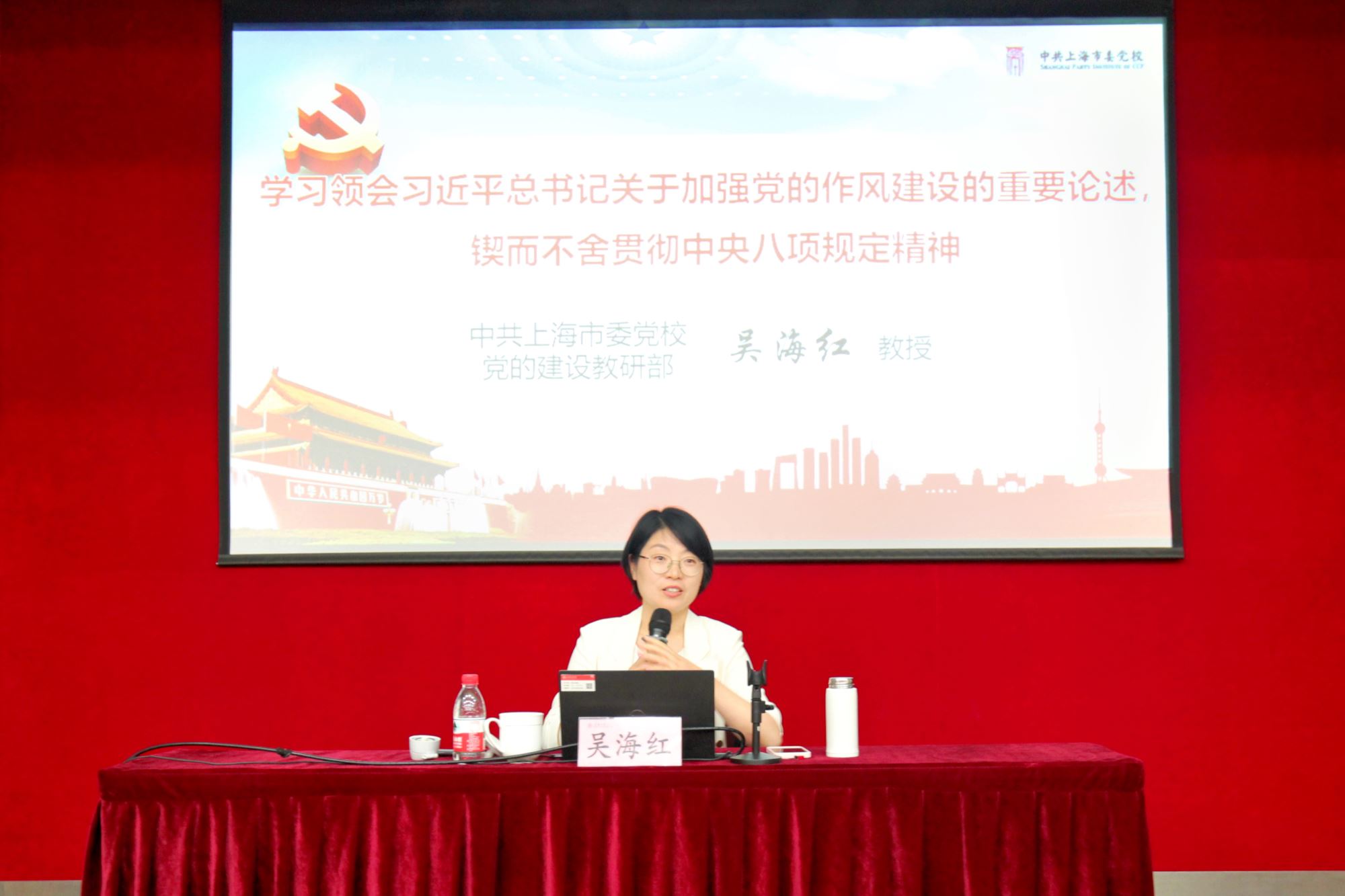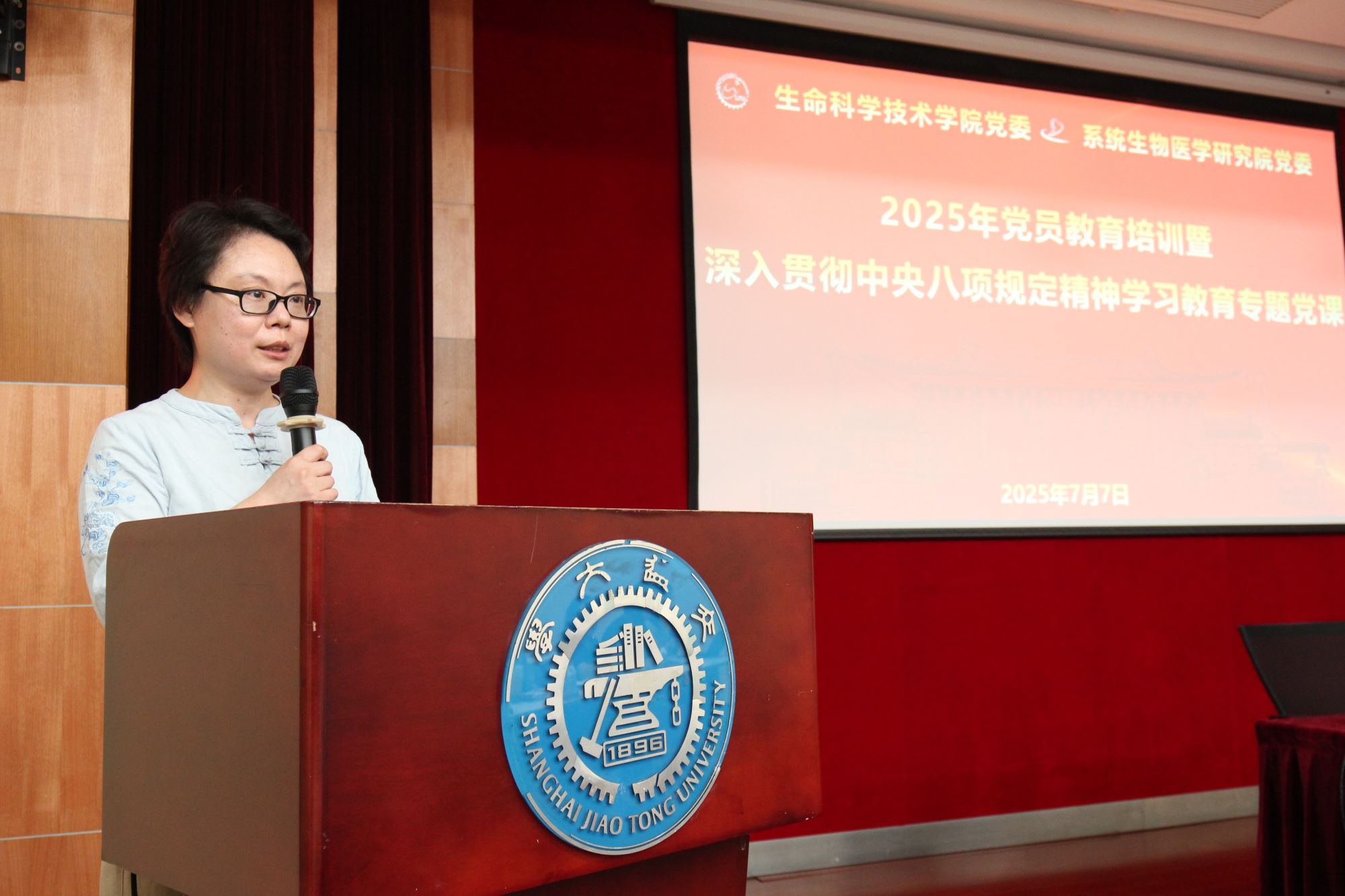 2025年7月7日,36365线路检测登录入口联合系统生物医学研究院党员教育培训暨深入贯彻中央八项规定精神学习教育专题党课,邀请上海市委党校党的建设教研部教授吴海红老师做专题辅导报告。两个单位党政领导班子、党委委员、师生党支部书记、师生党员近200人参加学习。活动由36365线路检测登录入口党委副书记王鑫主持。