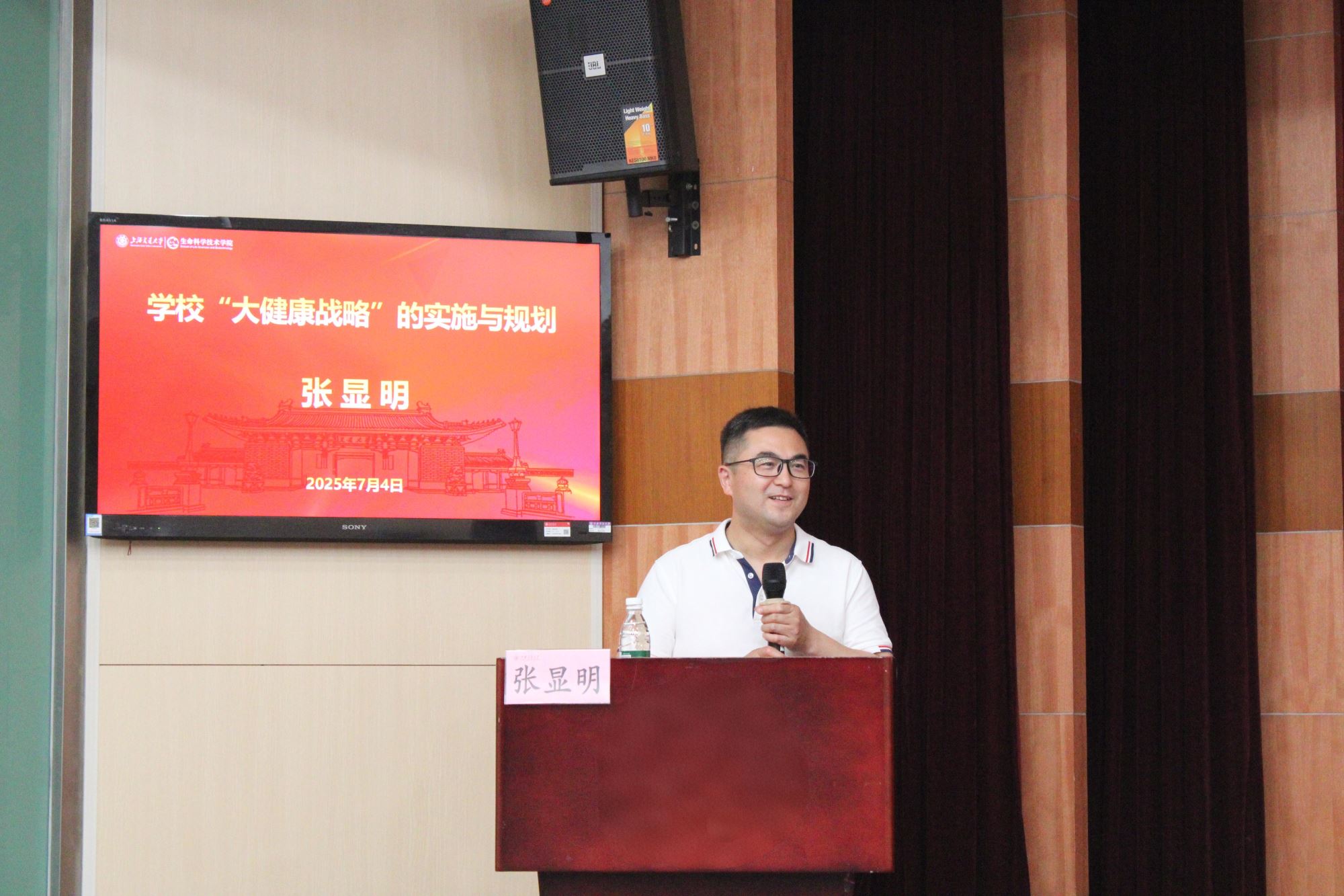2025年7月4日,36365线路检测登录入口开展理论中心组(扩大)学习暨大健康战略主题讲座。学院党委邀请学校大健康专项办公室主任、转化医学研究院直属党支部书记张显明做《“大健康战略”的实施与规划》主题讲座。学院理论中心组成员、系主任、党支部书记、青年教师代表共计40余人参加学习。