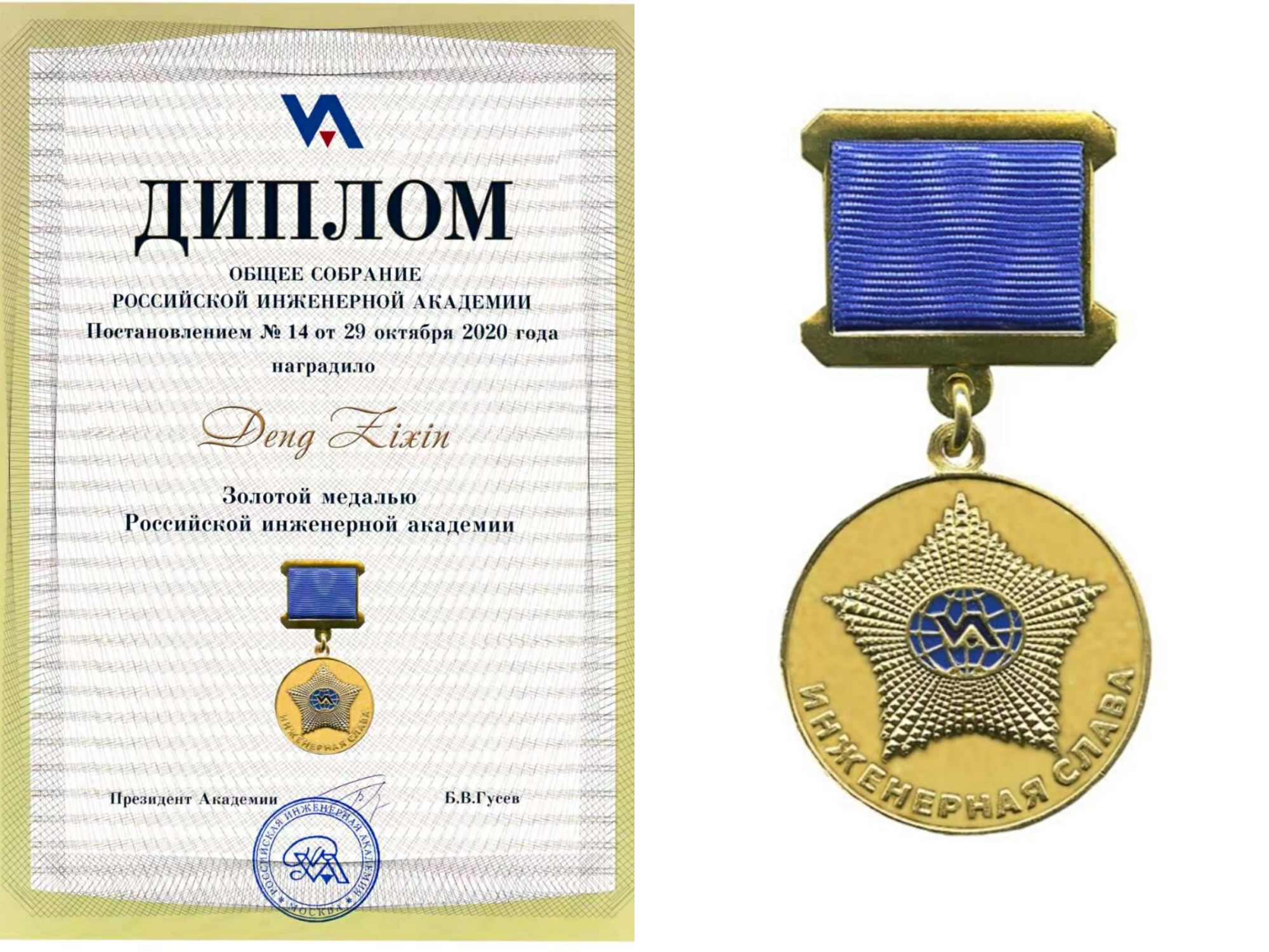 Prof. Zixin DENG was awarded a Gold Medal by the Russian National Academy of Engineering